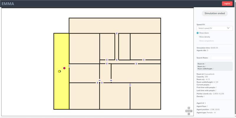 Durante la sessione sono state dimostrate live le funzionalità di: - anticollisione uomo-macchina, basate su sensoristica IoT e sistemi di rilevamento in tempo reale; - pianificazione e simulazione dei piani di evacuazione, con esecuzione dinamica degli scenari e visualizzazione dei flussi di persone e dei percorsi ottimizzati.